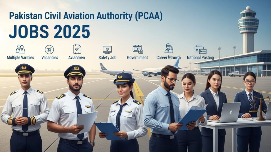 Pakistan Civil Aviation Authority (PCAA) has announced a major career opportunity through Situation Vacant Notice No. 07/2025, inviting highly qualified and experienced professionals to join its professional team on a contract basis. The advertisement covers multiple senior and mid-level positions including Additional Director Air Transport (International Regulations), Additional Director / Flight Inspector Ops & Regulations, Additional Director Aviation Promotion & Support Unit, Safety Inspector PEL, Senior Joint Director ICAO Cell, and Deputy Director IT Systems. These posts are offered purely on merit, with competitive monthly salaries ranging from approximately Rs. 308,309 to Rs. 573,850, along with a 5% annual increment and an initial three-year contract extendable based on performance. Age limits vary by position, generally ranging from 40 to 62 years, with applicable age relaxations as per rules.